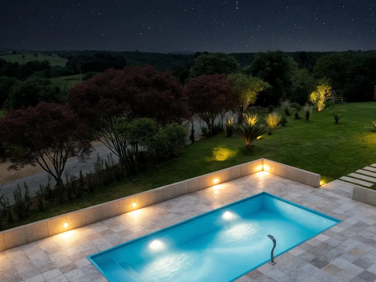 Apresentamos soluções de iluminação subaquática que valorizam sua piscina e criam um ambiente incrível à noite.