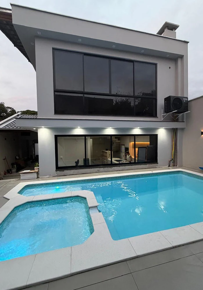 Durante a instalação, nossa equipe cuida de cada etapa, garantindo que a piscina fique perfeitamente nivelada e pronta para uso.